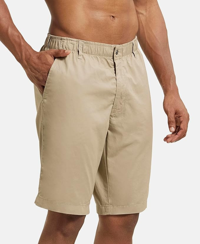 Men's Super Combed Mercerised Cotton Woven Fabric Straight Fit Solid Shorts with Side Pockets