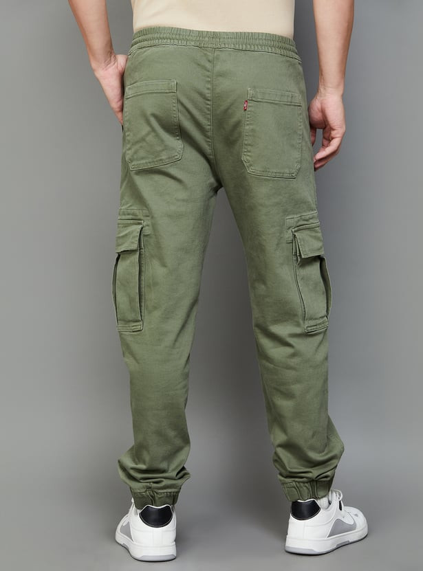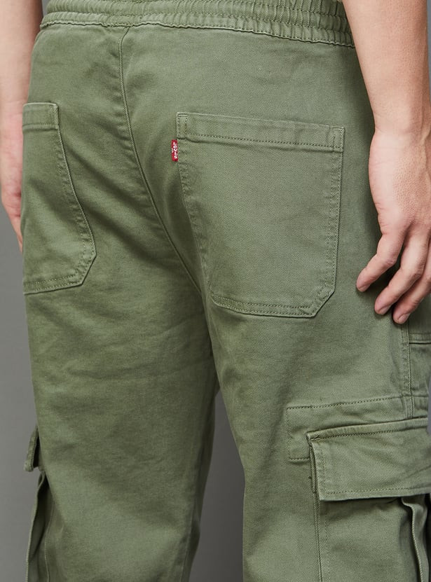 Levi's cargo pants come with six pockets: two on the front, two on the side, and two on the back. It also has a low-rise elastic waist with a string in the middle. The cargos are incredibly comfortable to move around in due to its comfy fit.