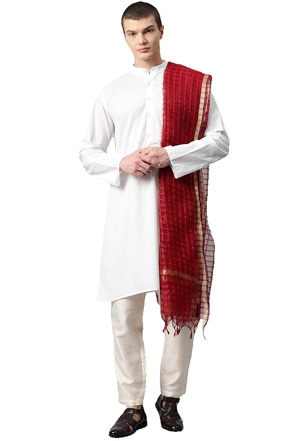 TRADITIONAL MEN'S DUPATTA: Indulge in the cultural richness with this meticulously crafted men's dupatta, tailored to complement the grandeur of sherwanis and kurtas. Its intricate design and traditional flair elevate your attire, making a profound statement of sophistication and cultural pride.