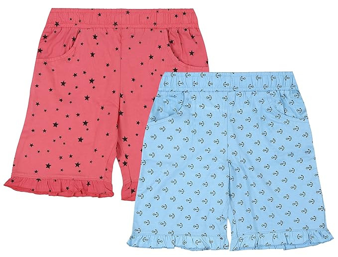 Girl's Printed Cotton Shorts Pack of 2 | Regular Fit