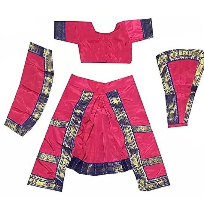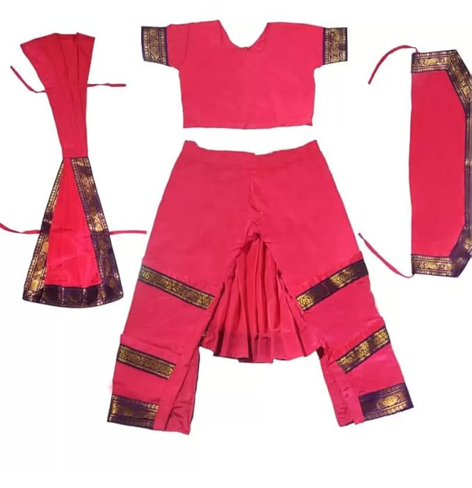 Dindo Point Pink Bharatnatyam Dress for Girls with 1 Line Ghungroo Classical Dance Costume