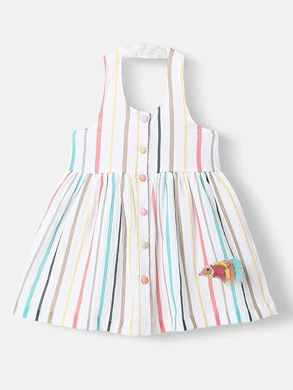 Girl's Colourful Printed Fit & Flare Cotton Dress |