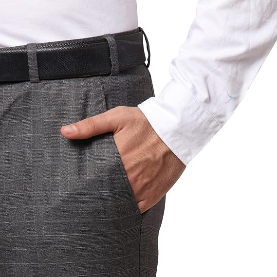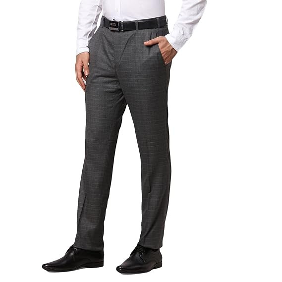 Men's Poly Viscose Blend Solid Pattern Slim Fit Flat Front Formal Trouser