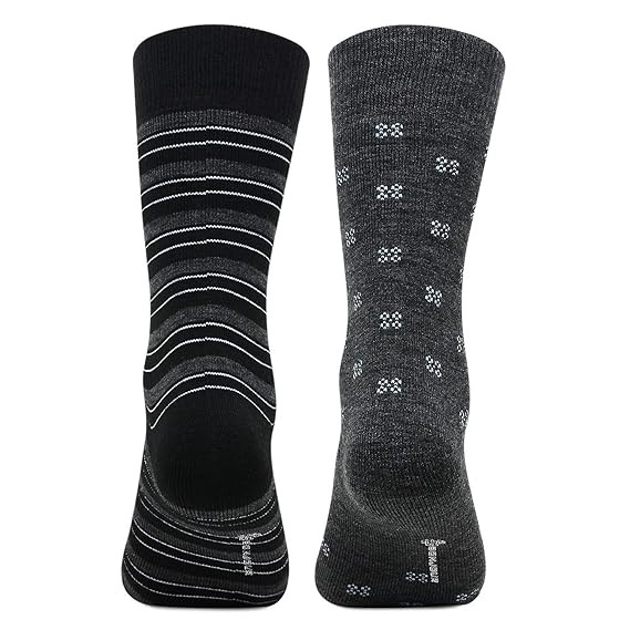 Multicoloured Cushioned Crew Woolen Socks for Men- Pack of 2