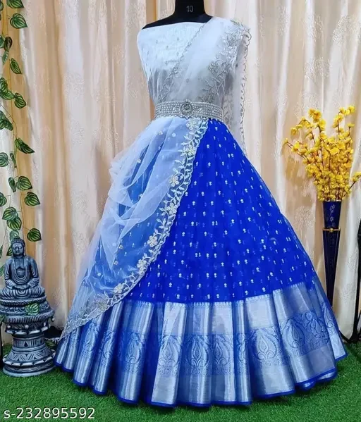 south indian traditional half saree lehenga choli silver zari saree