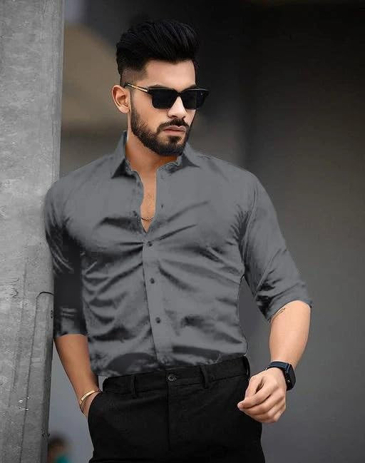 Men's Regular Fit Solid Soft Touch Cotton Casual Shirt with Pocket Design with Spread Collar & Full Sleeves