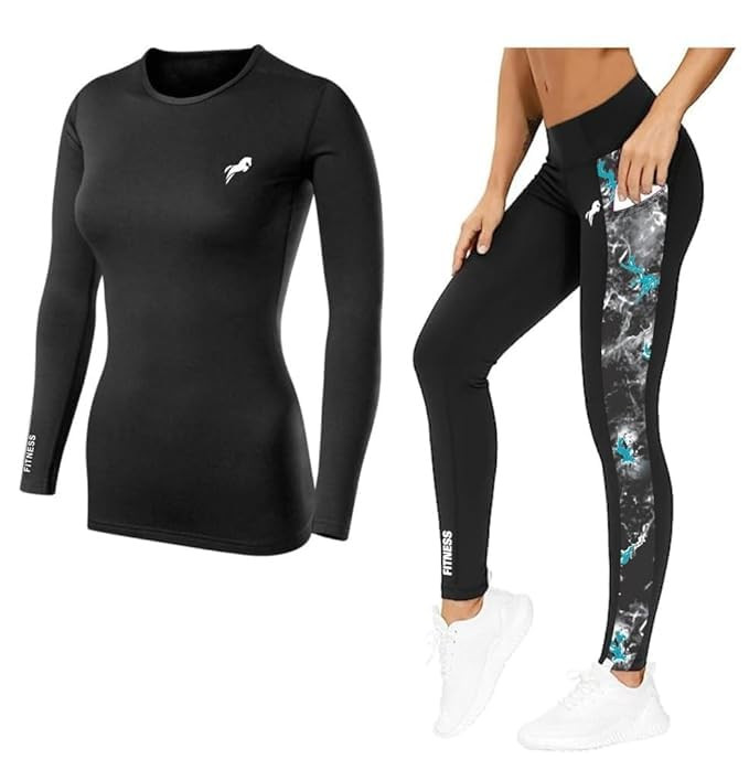 JUST RIDER Gym wear Leggings Workout Pants with Upper Long Sleeves Track Suit for Women | Round Neck Tracksuit for Women | Suitable for Yoga, Jogging & Gym | Workout Clothes